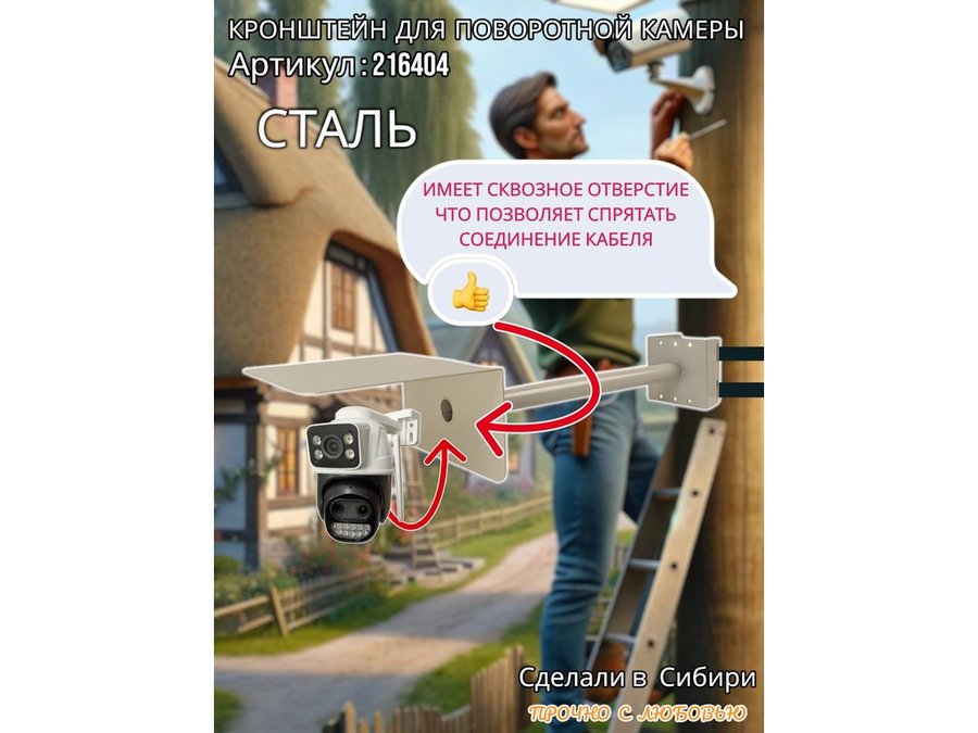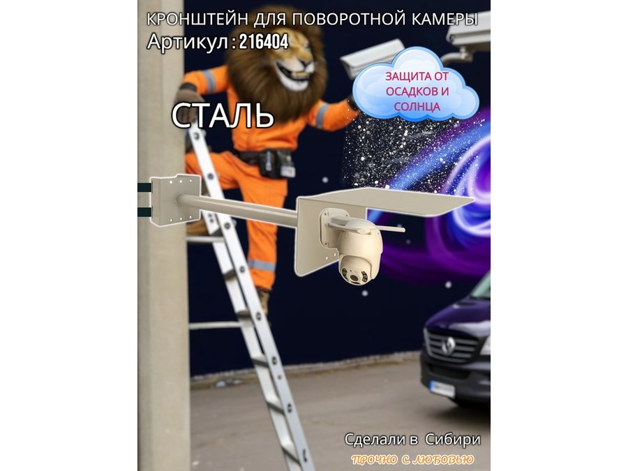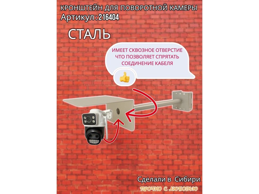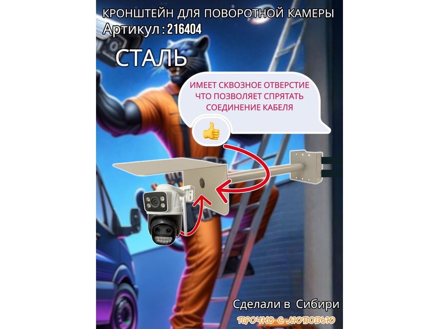 • Стальной кронштейн позволяет вынести камеру от столба на 50 см.