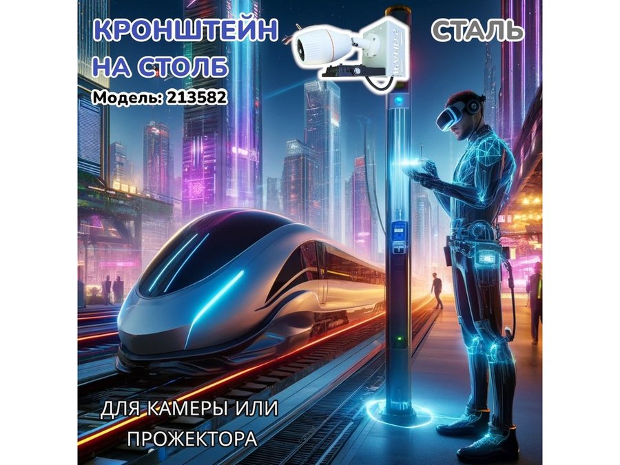 В корзину Купить в 1 клик Кронштейн для камеры и прожектора на столб "IPAHD-5-213613" черный, под СИП-ленту, хомут