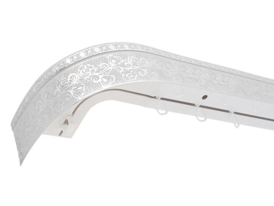 В корзину Купить в 1 клик 160см карниз КРУЖЕВО СЕРЕБРО БЕЛЫЙ 2х рядный с декор. планкой 70мм в инд. упаковке. ультракомпакт