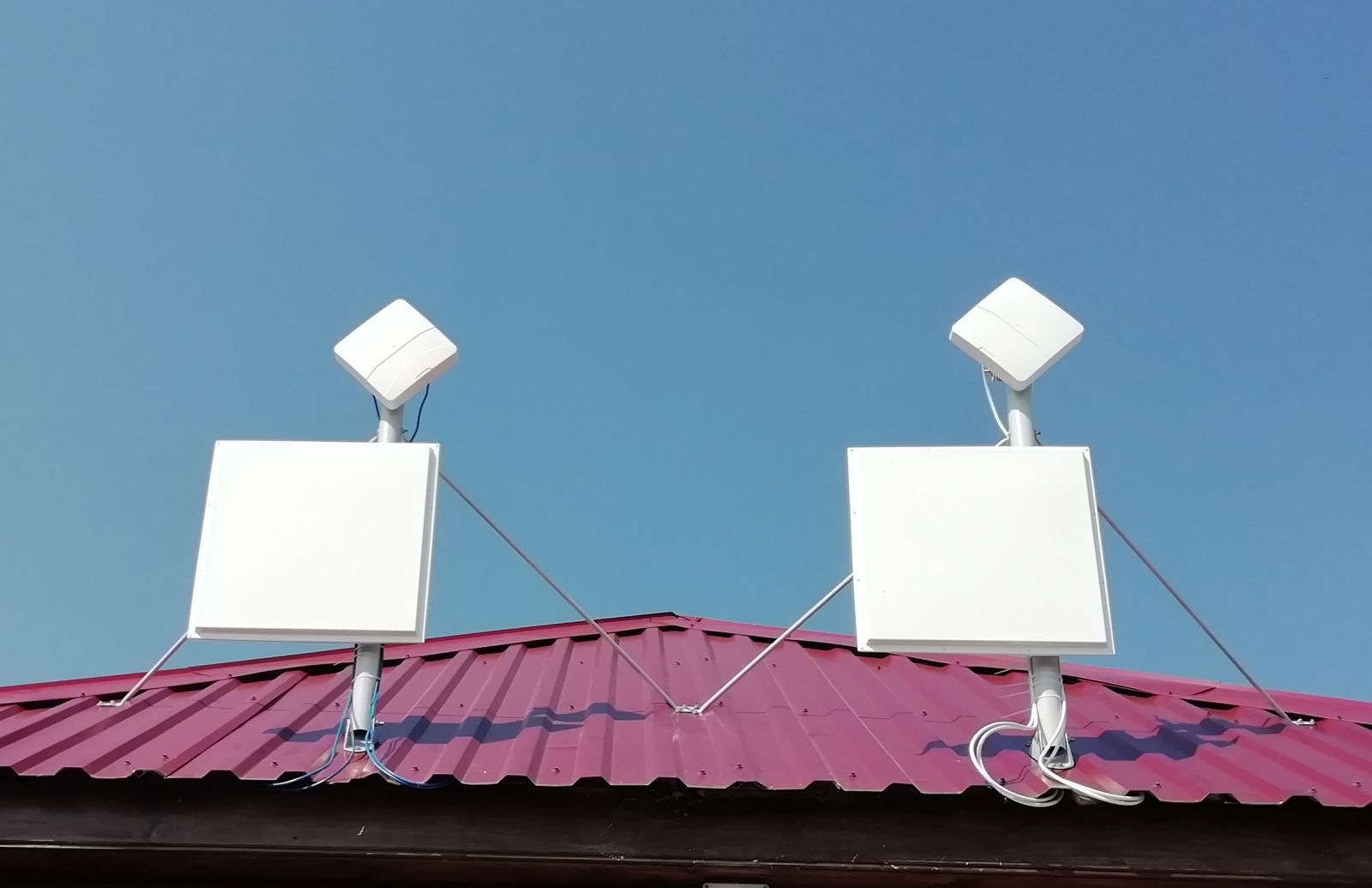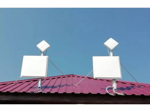 Пример монтажа на одной мачте телевизионной антенны и панельной антенны для беспроводного интернета 3G, 4G