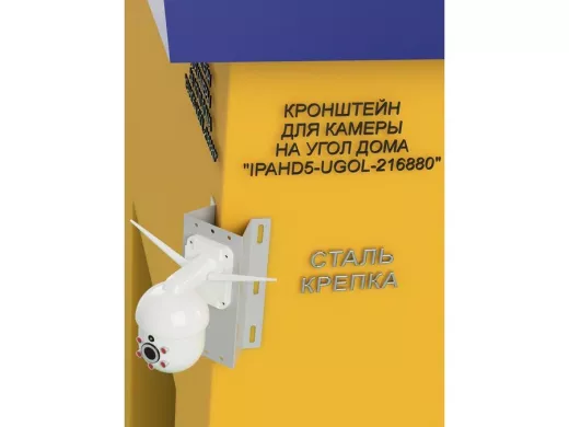 Кронштейн угловой металлический для камеры видеонаблюдения "IPAHD5-UGOL-216880". Подходит для большинства типов видеокамер: цилиндрических, купольных или поворотных