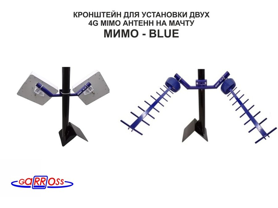 Кронштейны "МИМО" СИНИЙ - используется для установки телевизионных антенн, работающих вместе с цифровыми приставками DVB-T2 либо с телевизорам разнообразных моделей, антенн для беспроводного интернета 3G, 4G, WI-FI, антенн для радиостанций различных диапазонов.