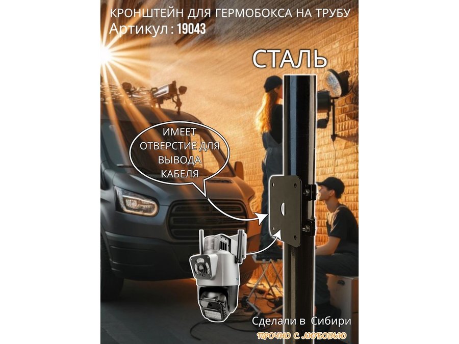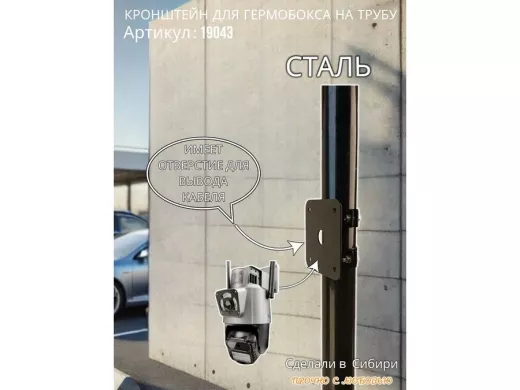 • Кронштейн позволяет быстро зафиксировать гермобокс с видеокамерой на трубу.
