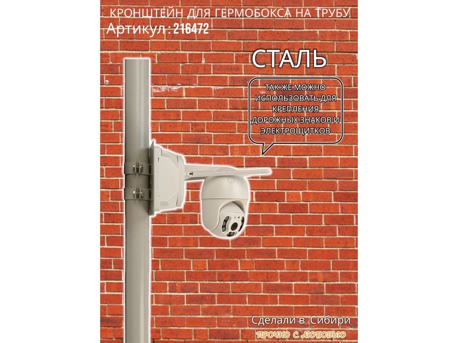 - Универсальный усиленный кронштейн предназначен для крепления гермобоксов,коробок с видеокамерой, дорожных знаков ,электрощитков на трубе диаметром 50мм.