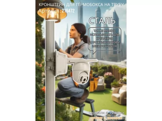 - Кронштейн позволяет быстро зафиксировать гермобокс с видеокамерой на трубу.