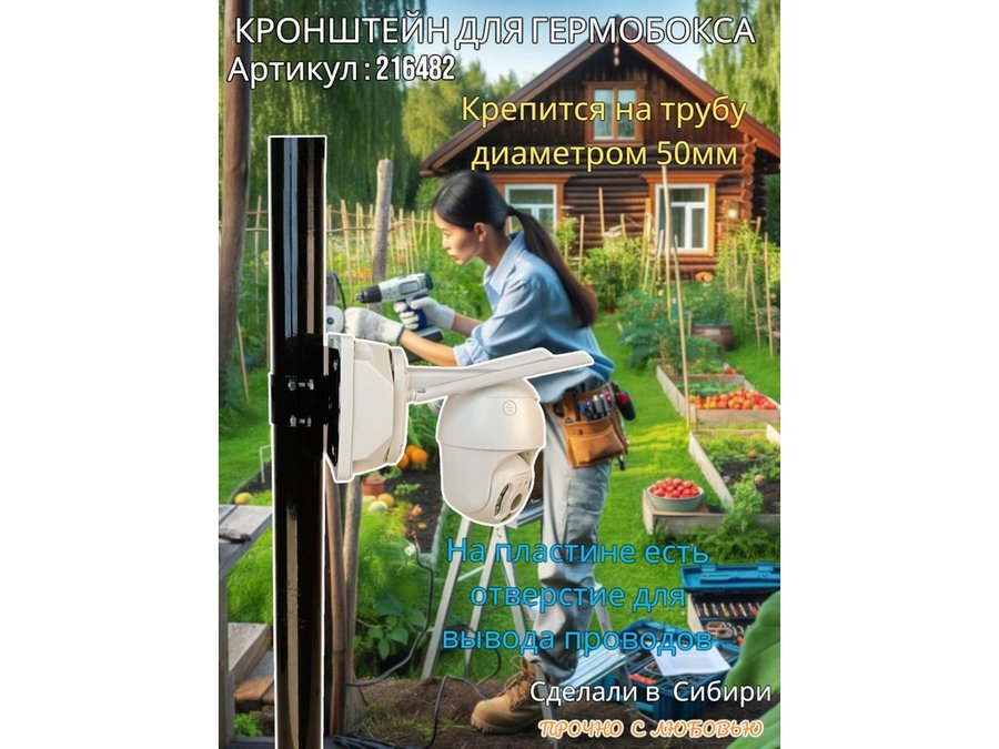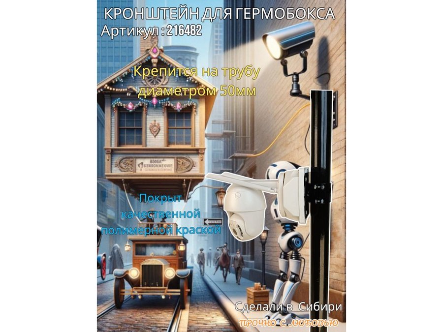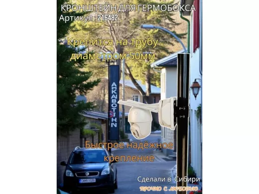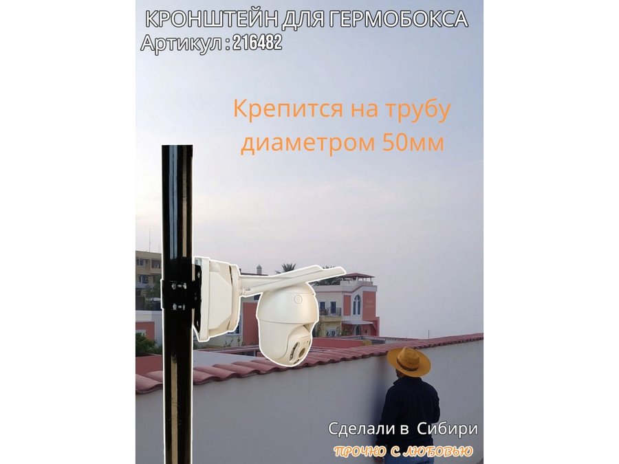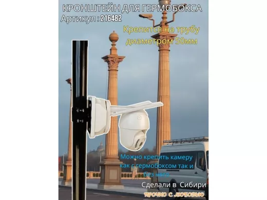 - Кронштейн позволяет быстро зафиксировать гермобокс с видеокамерой на трубу.