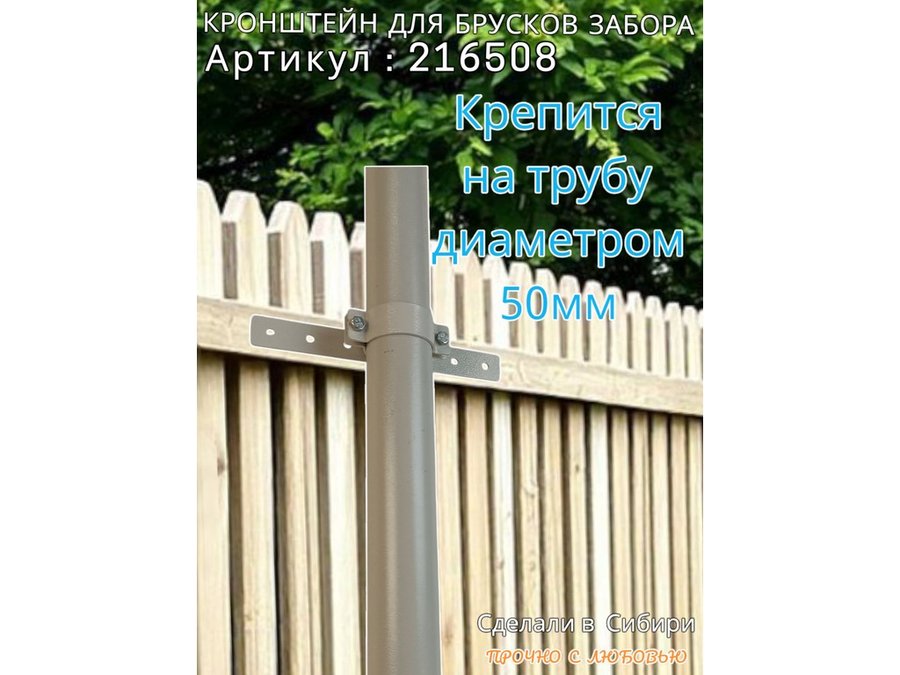 В корзину Купить в 1 клик Кронштейн для крепления брусков забора на трубу диаметром 50мм "PODPORA-216508" сталь, цвет серый