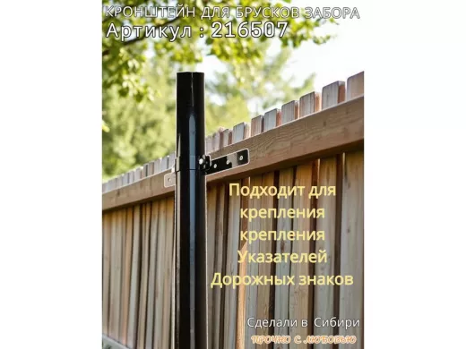 Кронштейн для крепления брусков забора на трубу диаметром 50мм "PODPORA-216507" сталь, цвет черный
