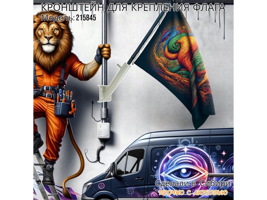 Кронштейн для крепления флага на трубе до 50мм угол 45 градусов "ФЛАГОКРЕП-215844" сталь,цвет черный