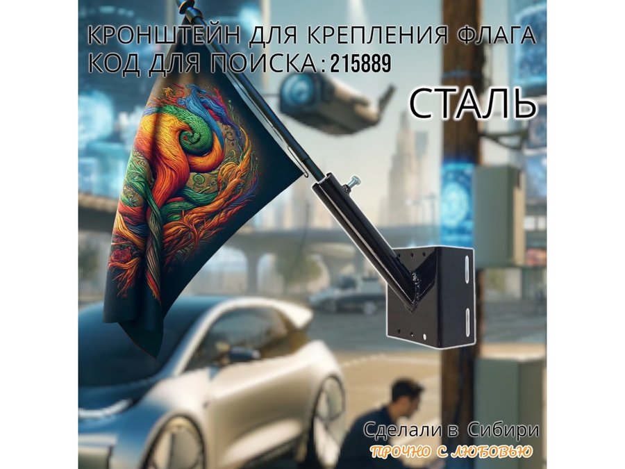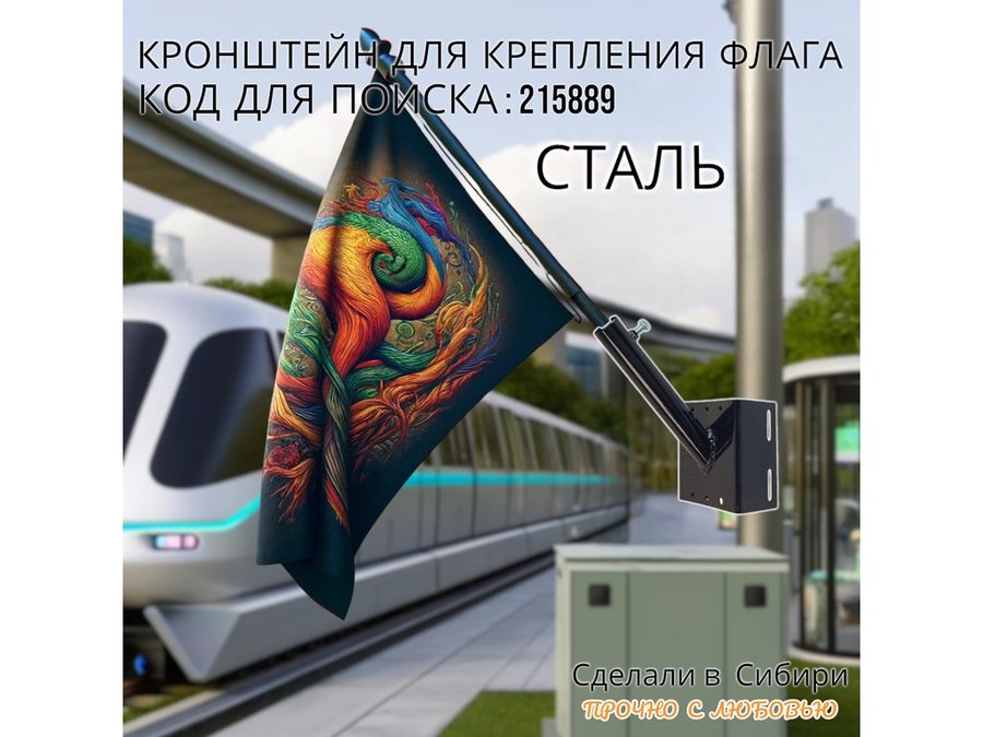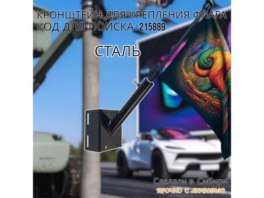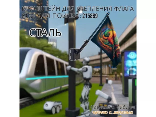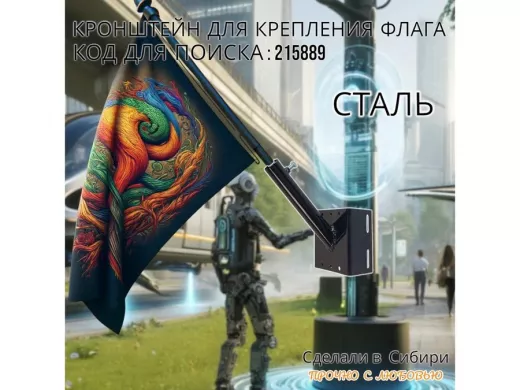 Кронштейн для крепления флага на столб угол 45 градусов "ФЛАГОКРЕП-215889" вылет 21см, сталь,черный
