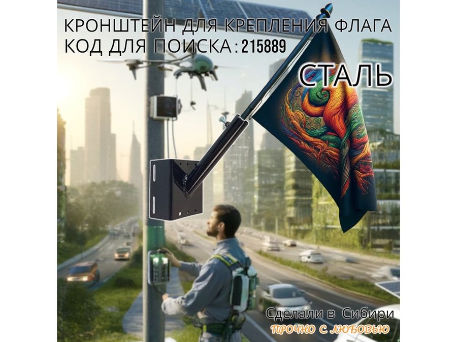 Кронштейн позволяет быстро и прочно зафиксировать флаг или вазон на столбе без его сверления.
