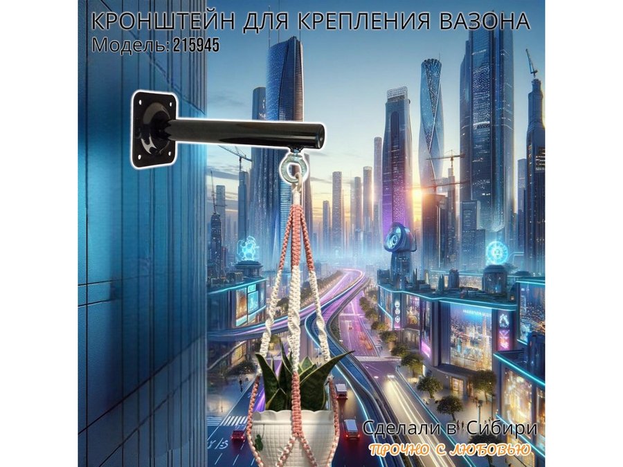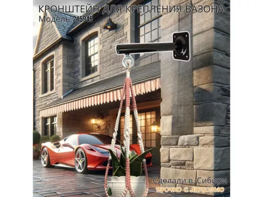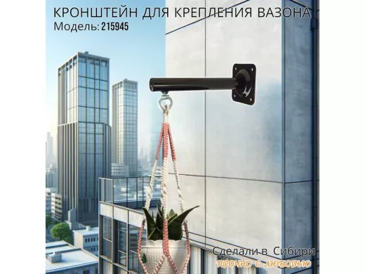 Кронштейн для крепления кашпо, вазона на стене угол 90гр вылет 25см "ПРОСЕКИНО-215945" сталь, черный