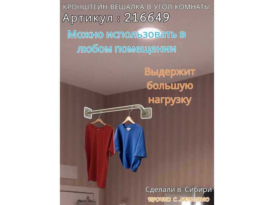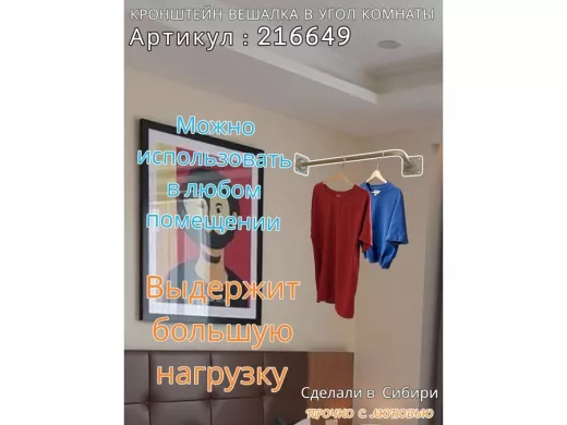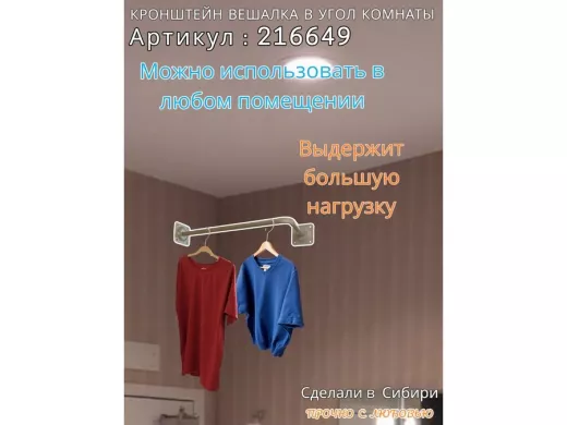 • Кронштейн для плечиков с одеждой, используется для установки в угол комнаты или к потолку.
