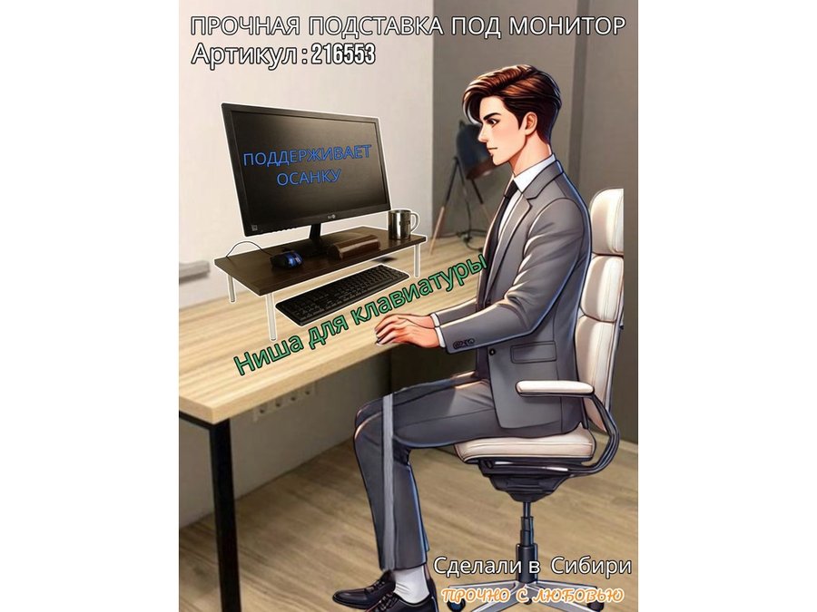 • Универсальная подставка для монитора имеет лаконичный и стильный дизайн, идеально подойдет для любого интерьера.