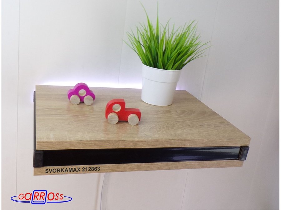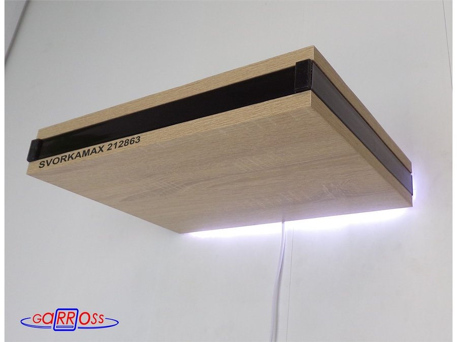 Парящая полка скрытого крепления с подсветкой и тайником, черный "SVORKAMAX 212863" 30х40 см, дуб