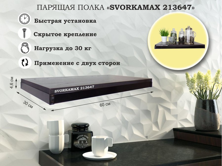 . Полки скрытого крепления "SVORKAMAX" парящие полки 60х30 см