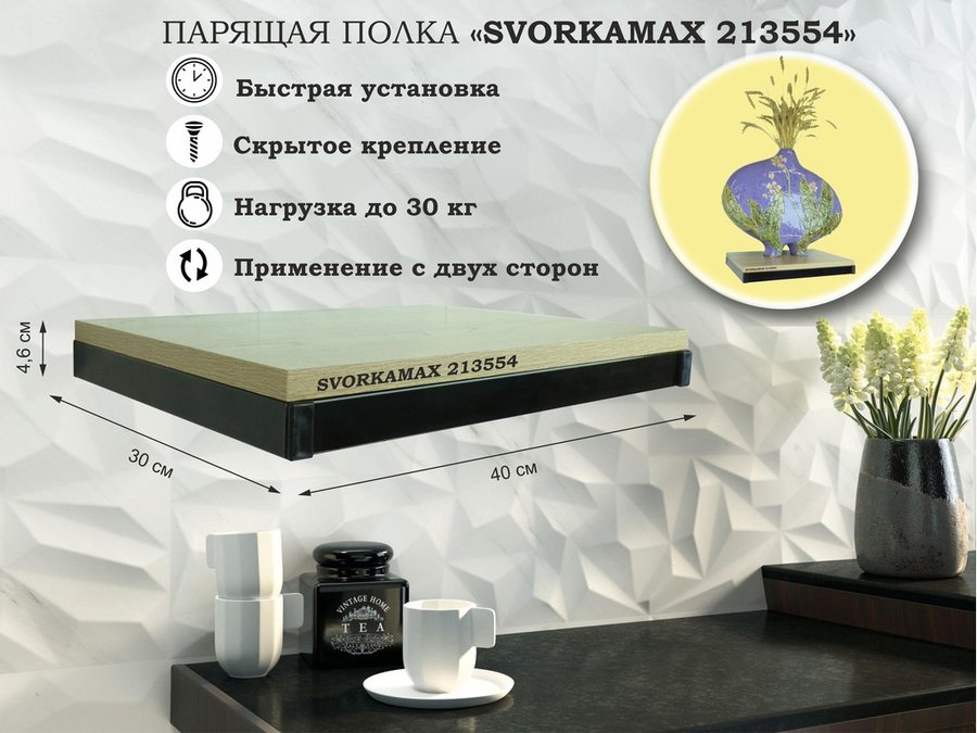 . Полки скрытого крепления "SVORKAMAX" парящие полки 40х30 см