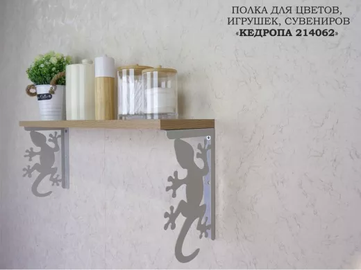 В корзину Купить в 1 клик Полка для цветов, игрушек,сувениров "КЕДРОПА-214062 гекон" размер 15х60х24 см, серый, дуб сонома