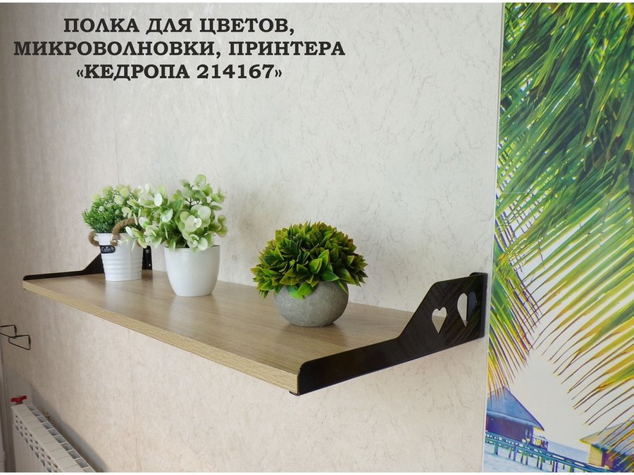 Полка для цветов, микроволновки, принтера "КЕДРОПА-214167" размер 90х30х10 см, дуб сонома, сердце