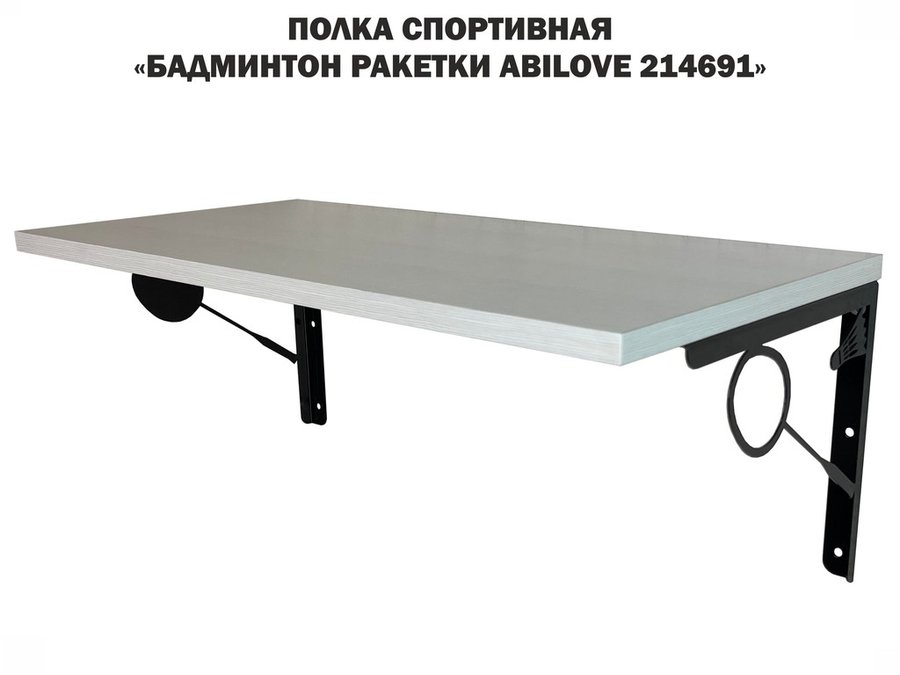 В корзину Купить в 1 клик Полка спортивная "БАДМИНТОН РАКЕТКИ ABILOVE-214691" для кубков, сосна выбеленная, размер 30х60см