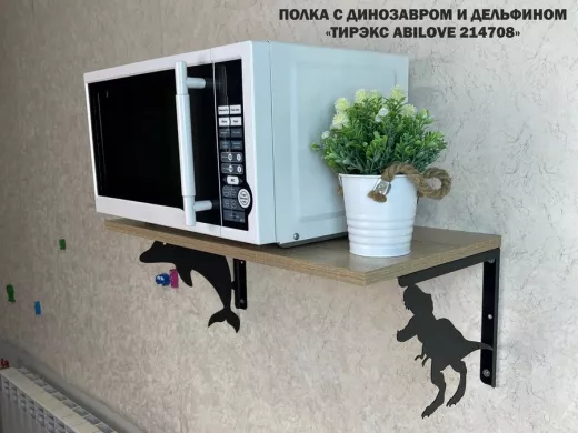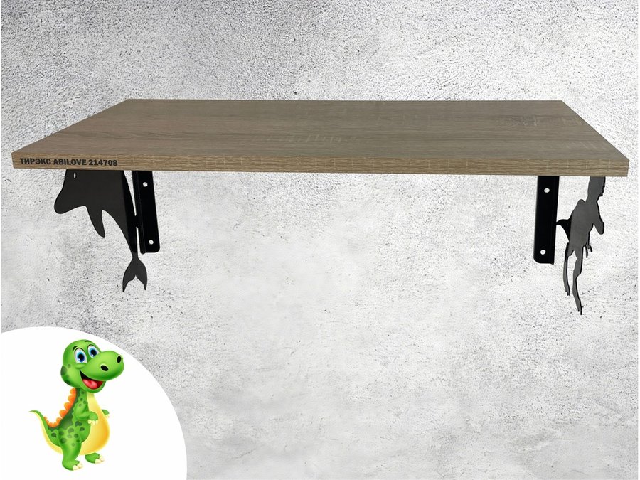 Полка с динозавром и дельфином "ТИРЭКС ABILOVE-214708" для игрушек, дуб сонома, 30х60см