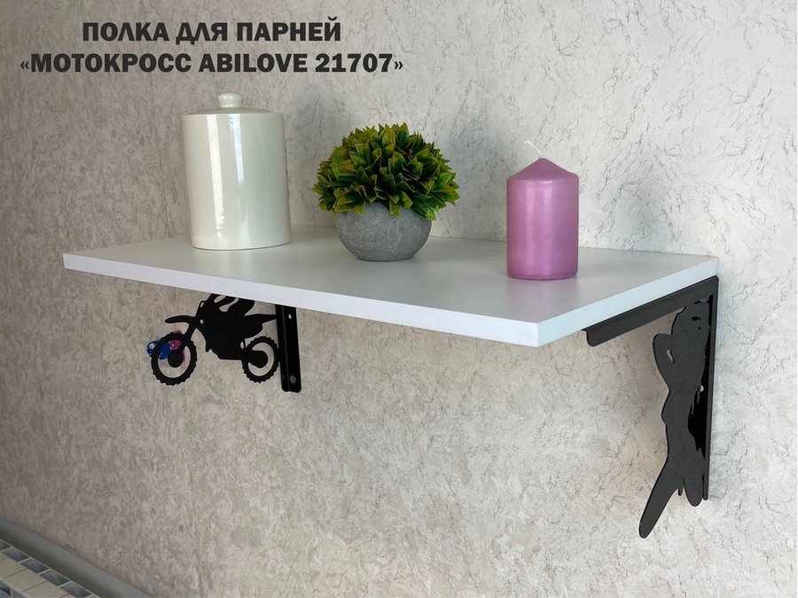 Полка для парней "МОТОКРОСС-214707" для кубков и аксессуаров, белый, 30х60см