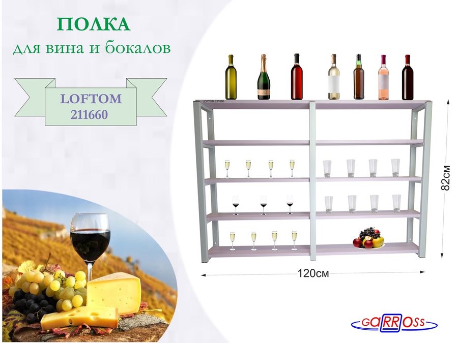 . Полки для вина и бокалов "LOFTOM" 5 уровней