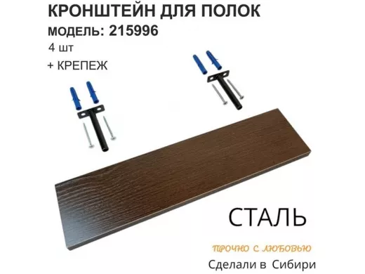 - Кронштейн предназначен для скрытого крепления полок, изготовленных из различных материалов: МДФ, ДСП, дерево, пластик.