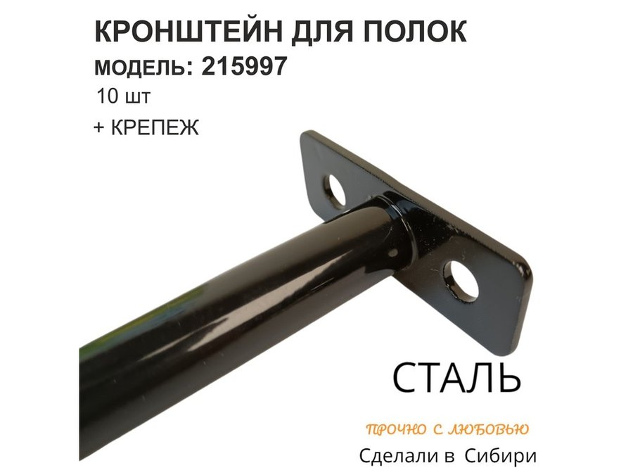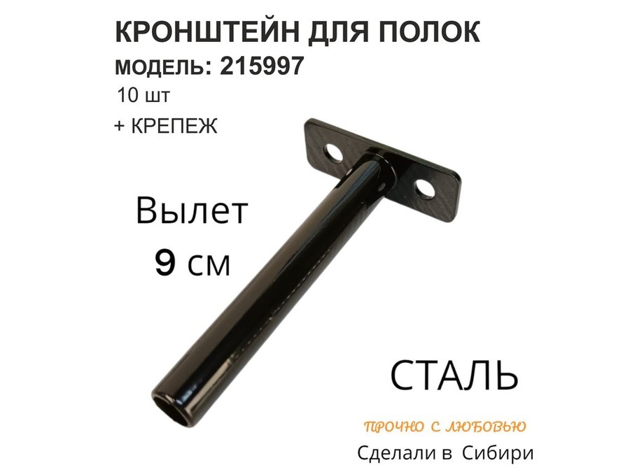 Кронштейн для скрытого крепления полок, 12х90мм, черный, в наборе 10шт "SVORKAMAX-215997" без полки