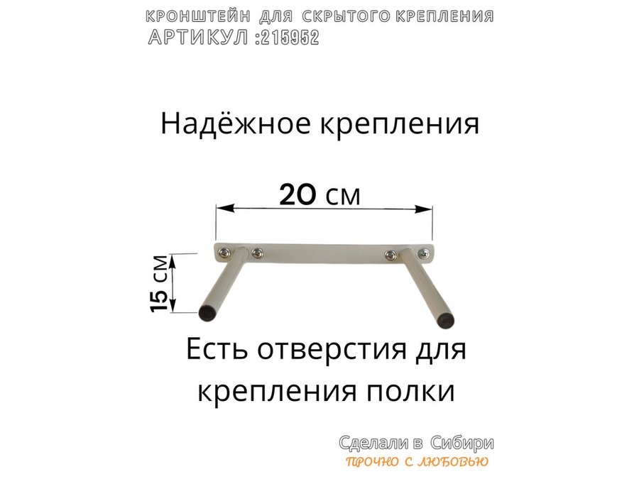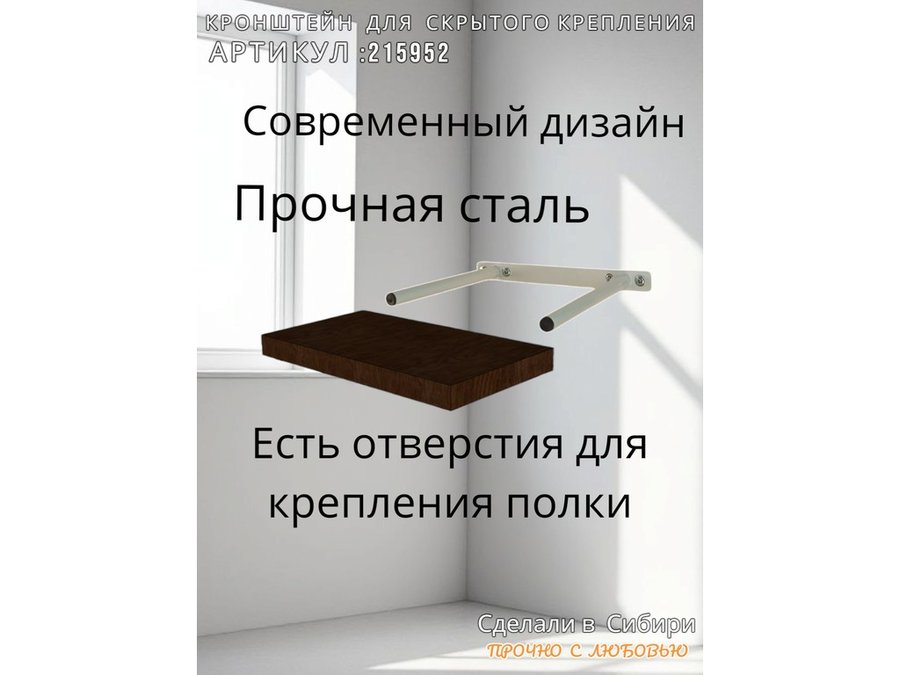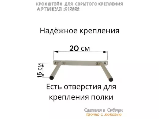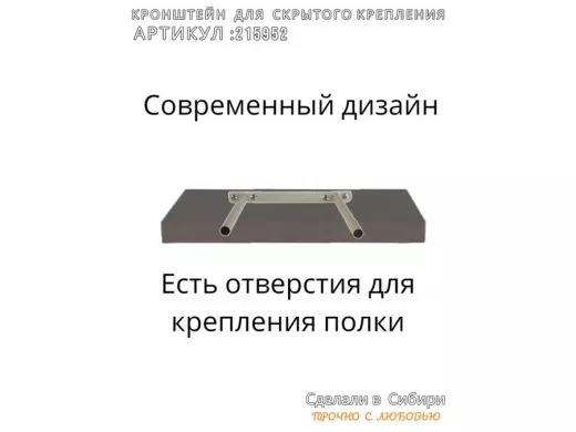 - Кронштейн предназначен для скрытого крепления полок, изготовленных из различных материалов: МДФ, ДСП, дерево, пластик.