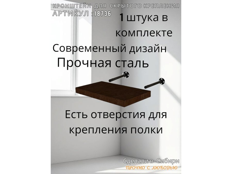 В корзину Купить в 1 клик Кронштейн 1 шт для полок скрытого крепления, длина 150 мм с 5отверст. "SVORKAMAX-18736" 12мм, черный