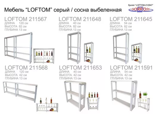 Столик приставной, серый, 55см "LOFTOM 212841" прикроватный стол журнальный с полкой, сосна