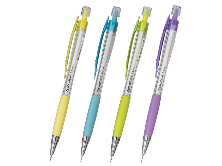 В корзину Купить в 1 клик Карандаш механический "BR-75671" "Elegant", корпус ассорти, резиновый держатель, ластик, 0,5мм