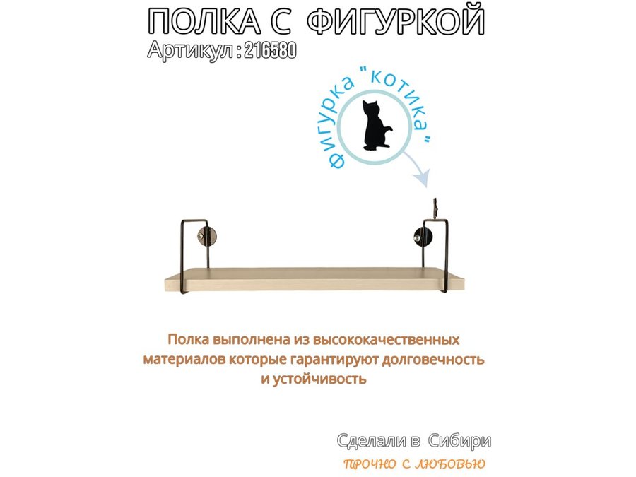 Полка с фигуркой котика "ABILOVE-216580" размер 10х40см ,черный ,сосна выбеленная