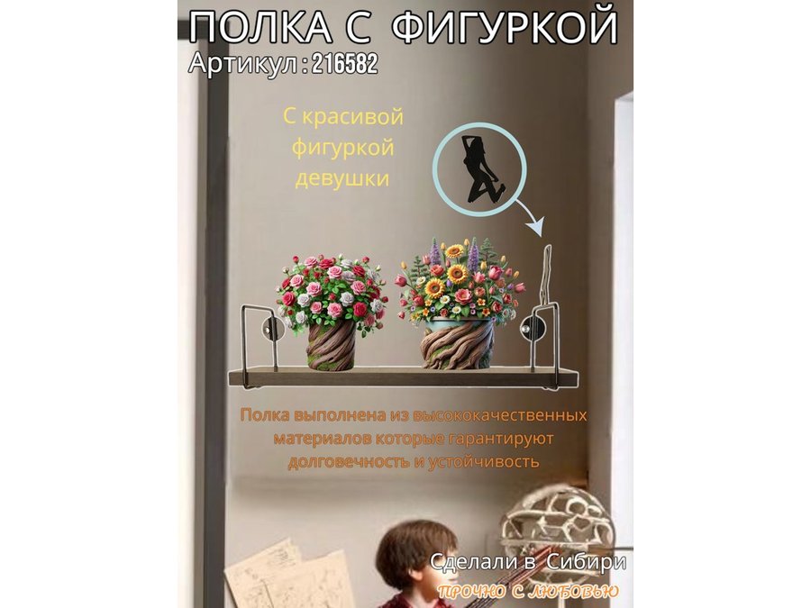 Интересная полка с фигуркой, позволит разнообразить интерьер, сделать его непохожим, уникальным, запоминающимся.