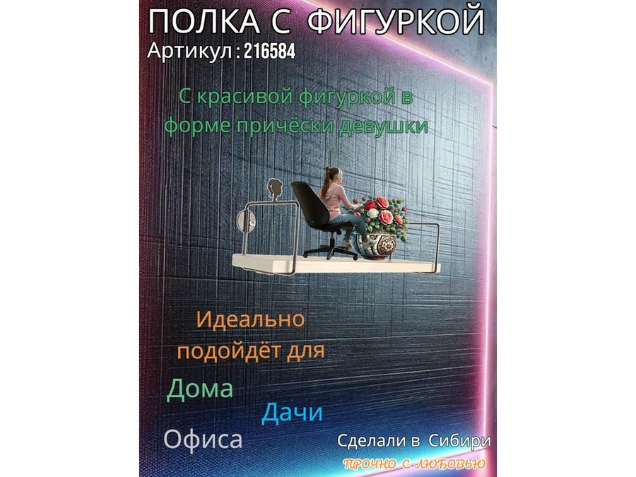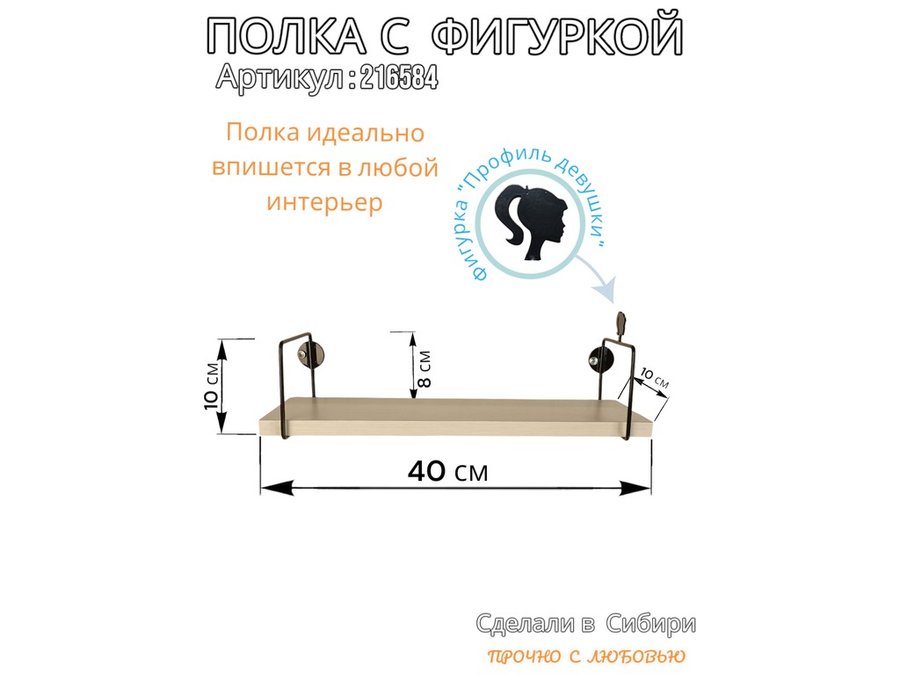 Полка с фигуркой прически девушки "ABILOVE-216584" размер 10х40см ,черный ,сосна выбеленная