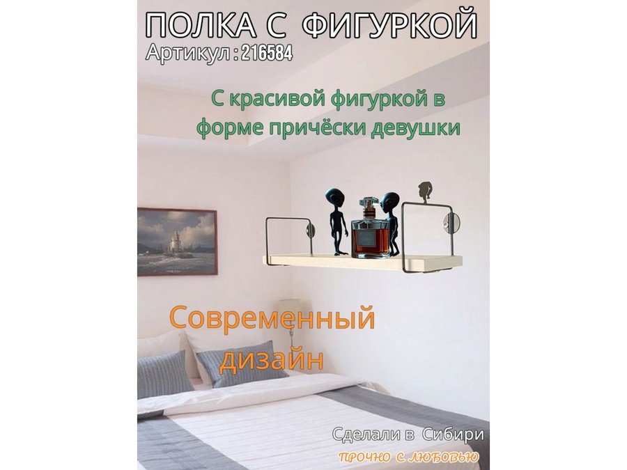 Интересная полка с фигуркой, позволит разнообразить интерьер, сделать его непохожим, уникальным, запоминающимся.