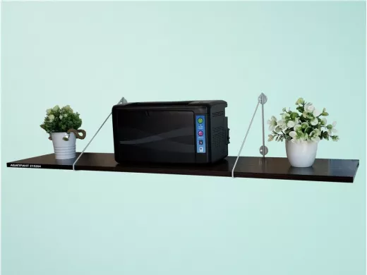 - Полка надежно крепится к стене при помощи анкеров или шурупов с дюбелями, на ней можно разместить принтер, бумагу
