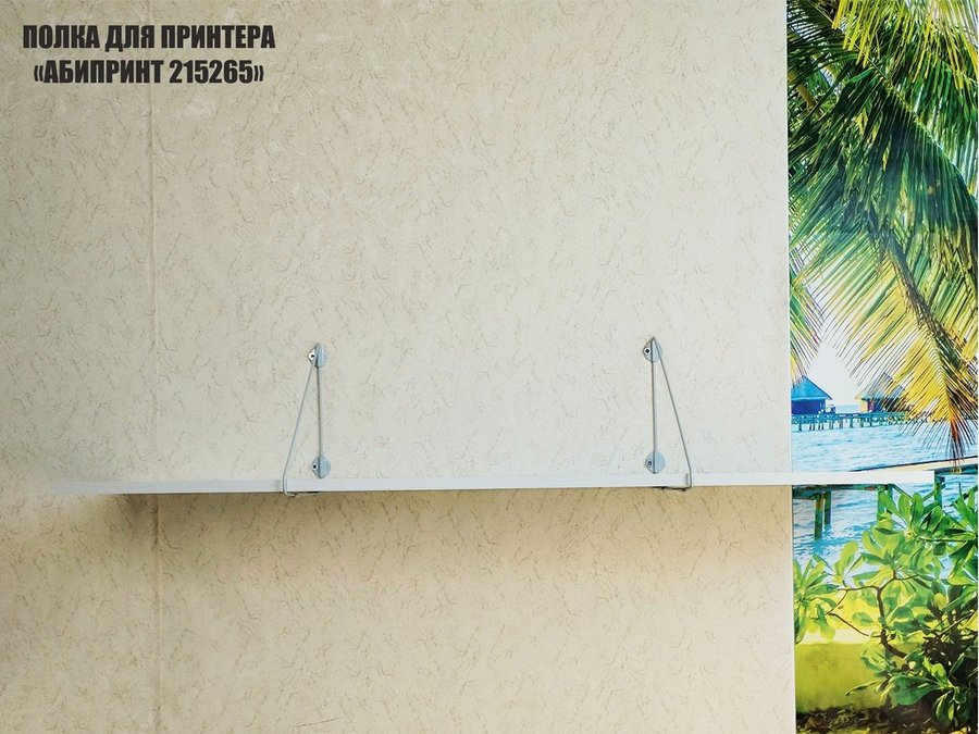 - Полка надежно крепится к стене при помощи анкеров или шурупов с дюбелями, на ней можно разместить принтер, бумагу