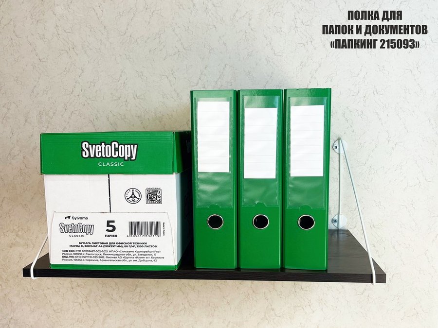 Полка для папок и документов "ПАПКИНГ 215093" высота 26 см размер 60х30 см белый и венге