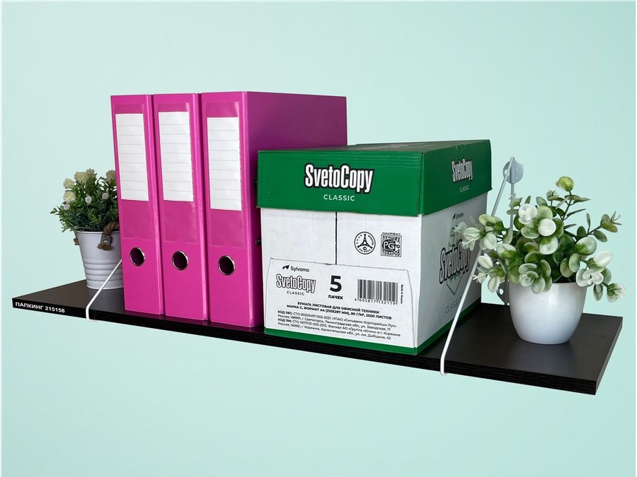- Полка надежно крепится к стене при помощи анкеров или шурупов с дюбелями, на ней можно разместить папки, документы