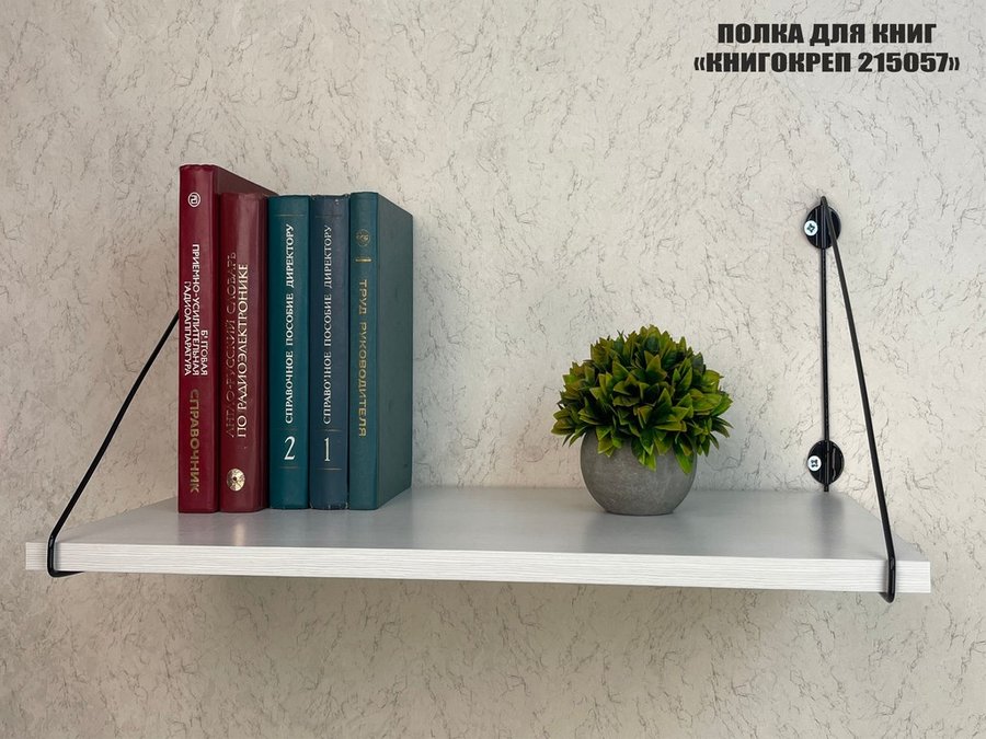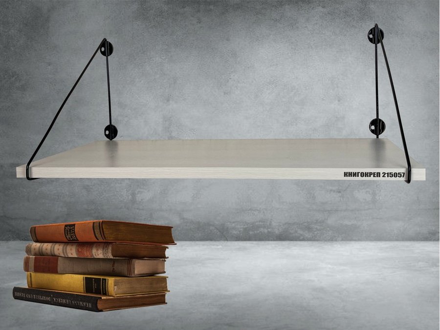 Полка для книг "КНИГОКРЕП 215057" высота 26 см размер 60х30 см черный и сосна выбеленная