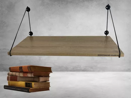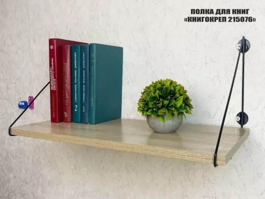 Полка для книг "КНИГОКРЕП 215076" высота 26 см размер 60х30 см черный и дуб сонома