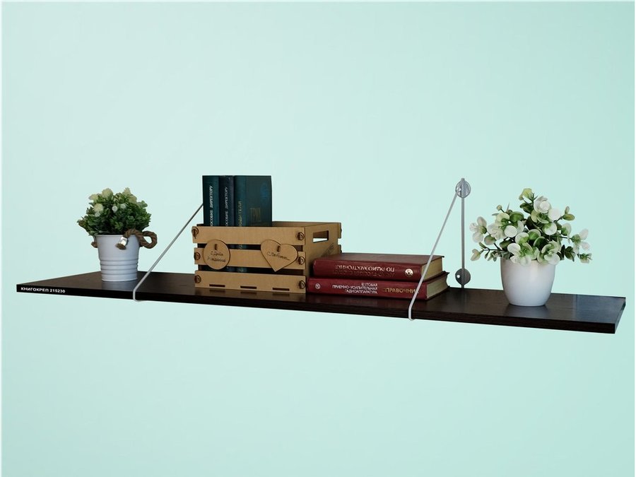 Полка для книг "КНИГОКРЕП 215230" высота 26 см размер 120х30 см серый и венге
