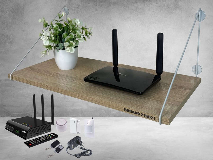 Полка для роутеров "РОУТЕРО 215027" высота 26 см размер 60х30 см серый и дуб сонома