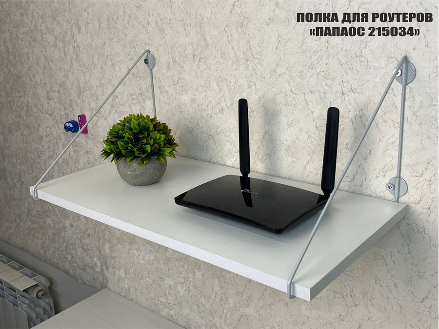 • Полка надежно крепится к стене при помощи анкеров или шурупов с дюбелями, на ней можно разместить роутер и многое другое