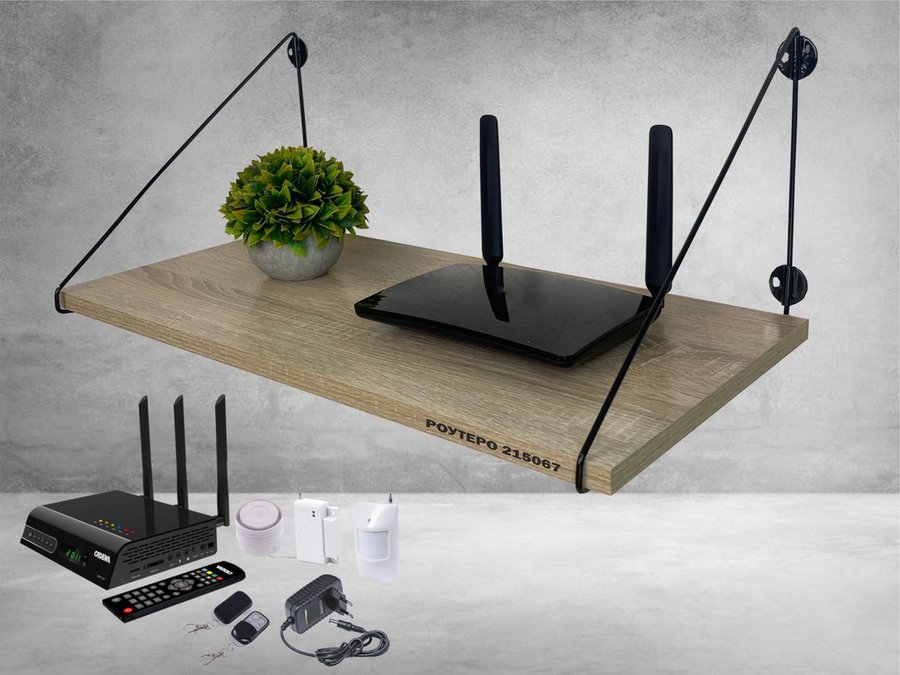 Полка для роутеров "РОУТЕРО 215067" высота 26 см размер 60х30 см черный и дуб сонома
