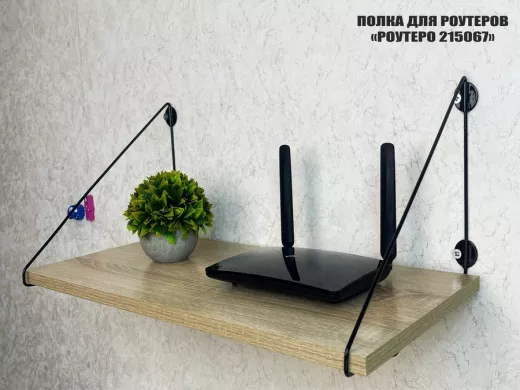 - Полка надежно крепится к стене при помощи анкеров или шурупов с дюбелями, на ней можно разместить роутер и многое другое