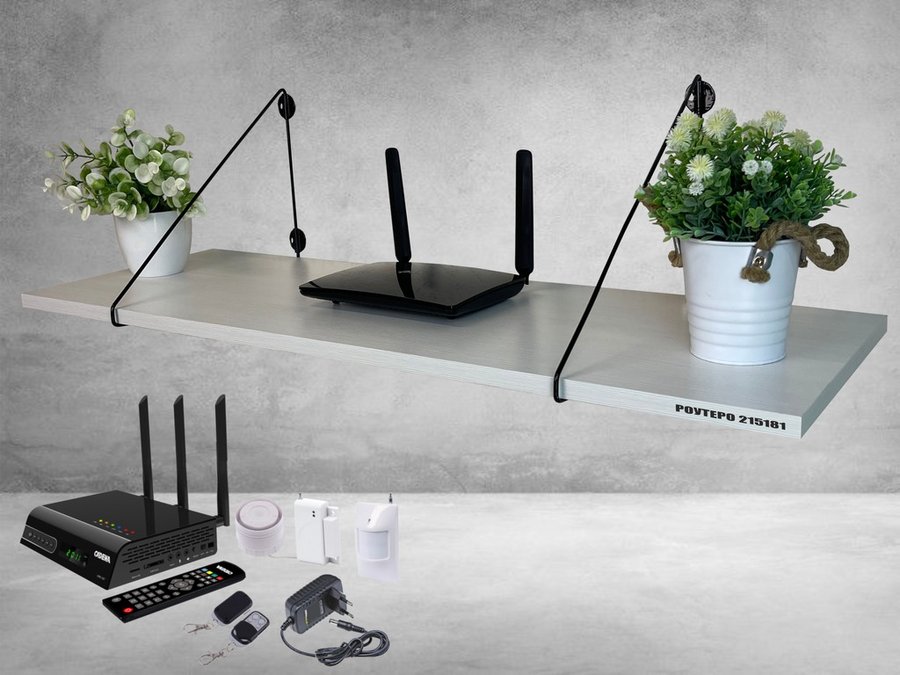 • Полка надежно крепится к стене при помощи анкеров или шурупов с дюбелями, на ней можно разместить роутер