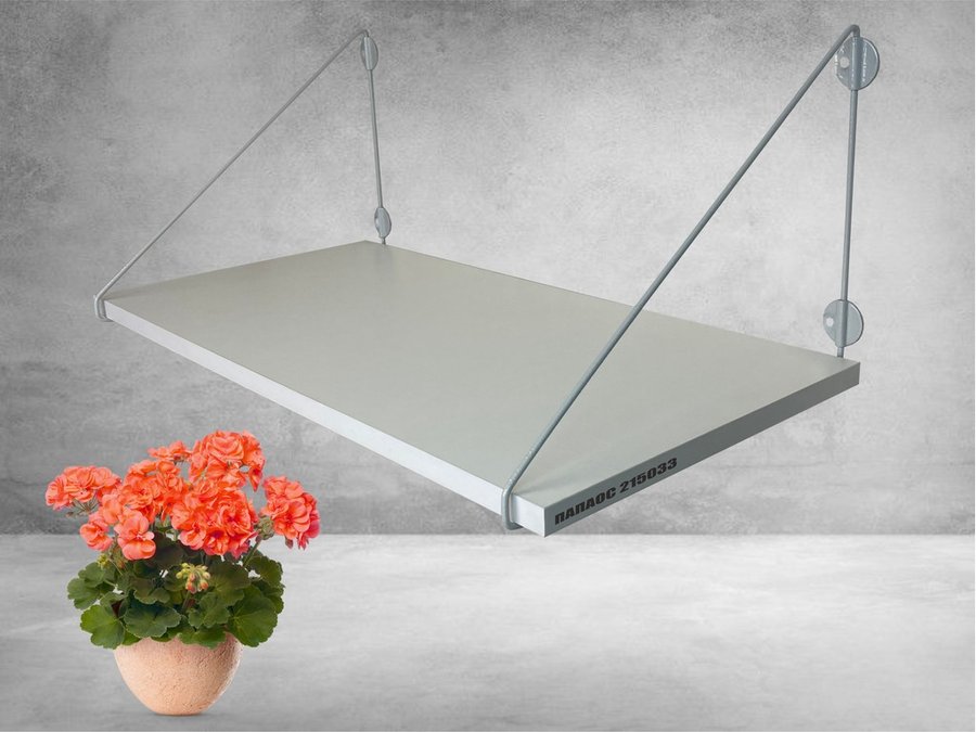 Полка для цветов "МАЙЦВЕТ 215033" высота 26 см размер 60х30 см серый и белый шагрень